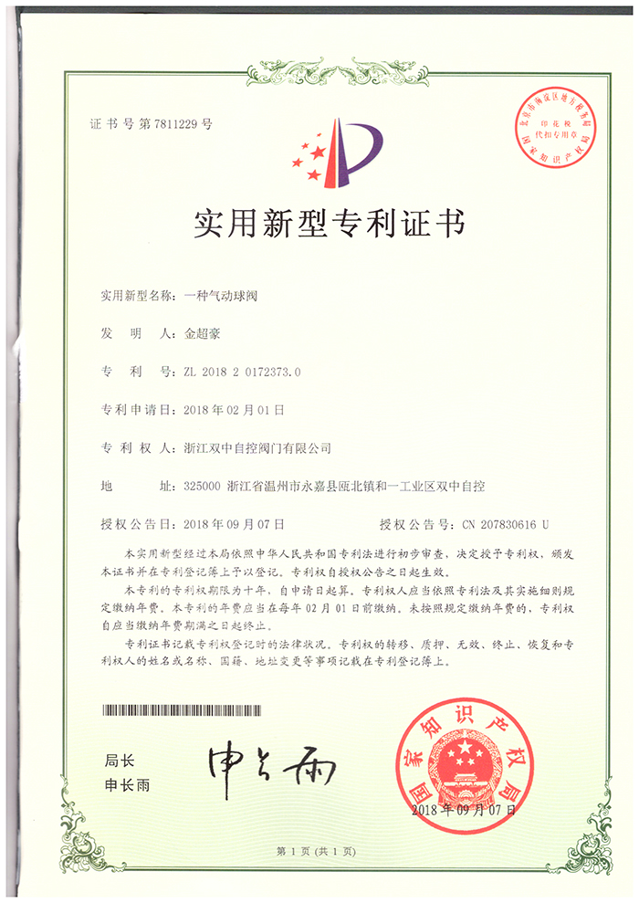 產(chǎn)品中心 企業(yè)榮譽>> 專利證書球閥 返回首頁
